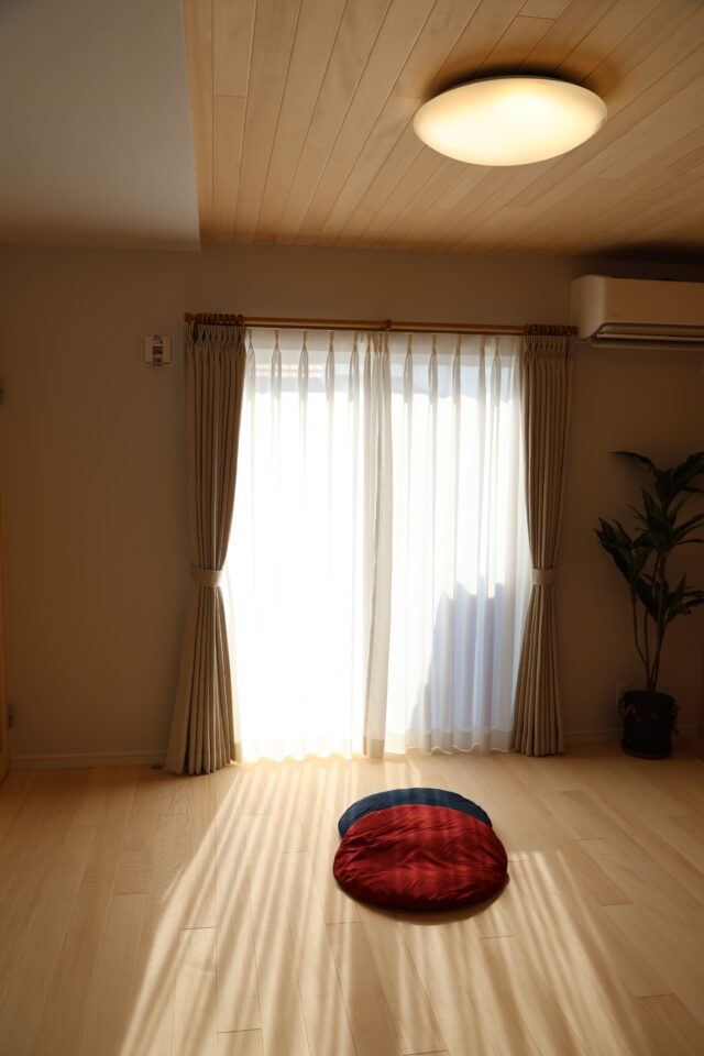 もみの木の家は抗菌効果があるので素足で十分です。手袋しなくて大丈夫な内装材にして快適に過ごせる。