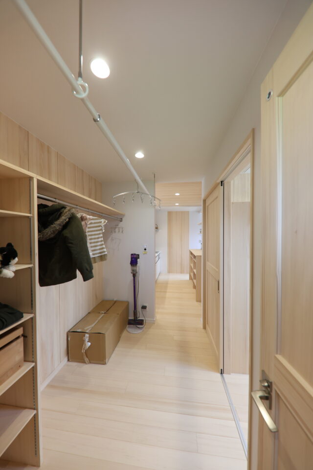 内装材はもみの木ともみの木の効能を邪魔しない物を選びます。ビニールクロスとか使いませんし塗り壁とかも使いません。もみの木の邪魔をしますからね!!