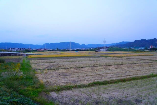 秋の夕方を歩きます。田んぼもまだ稲刈りがされていない場所があります。何か起こっているのかもしれません。