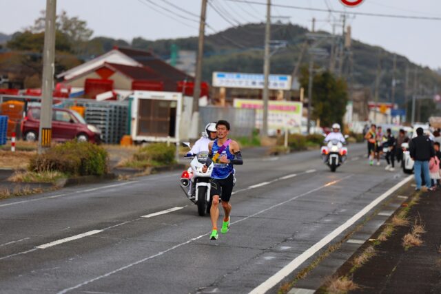 なんてやっていたら白バイとパトカーが見えてきました。どうやら1位で来ているようです。カメラの準備をします。設定だけを間違えないように確認します。後は考えずに撮るだけです。一瞬なので確認は出来ません。