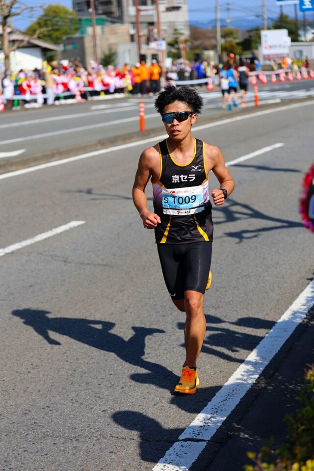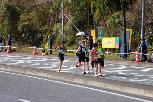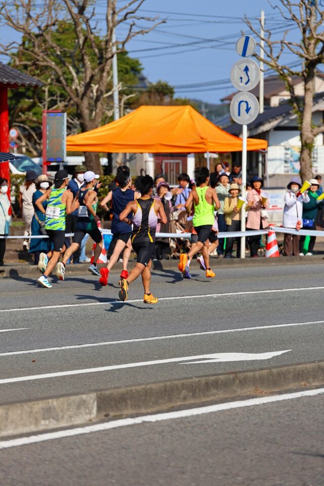 25キロ地点なのでやって来るのは11時前ぐらいでしょう。今回は1位が独走状態でやって来ました。長男は集団で走ってきた。県下一周駅伝後なので大変だと思います。