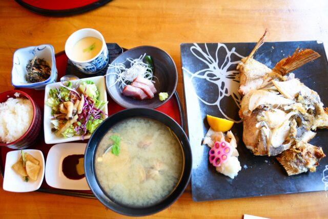 姪を送らないと行けなかったので、取り合えずご飯を食べる事にします。七海に寄りました。今日は焼き魚ランチを頂きます。とあ君は水槽の魚を観たいみたいでぐずっています。