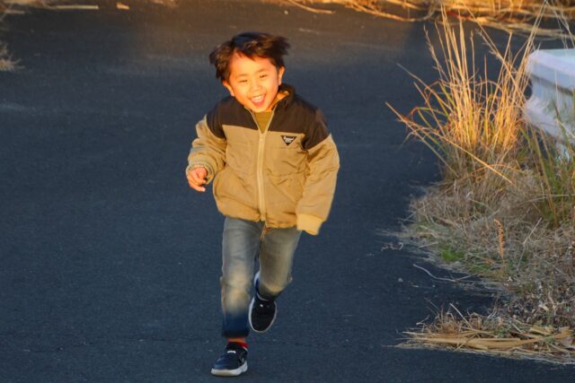 気が付いたら16時半でした。散歩に行きます。天気も良くて景色もきれいです。川沿いを歩きます。鴨が川に飛んできたり、越冬ツバメが居たりと楽しく歩いていると前から見慣れた子供がやってきます。