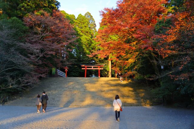 今度は霧島神宮に行きます。夕方の霧島神宮は写真撮影にはちょうど良い光加減です。人も少ないしねらい目かもしれません。紅葉が綺麗でした。また、夕日も綺麗でした。