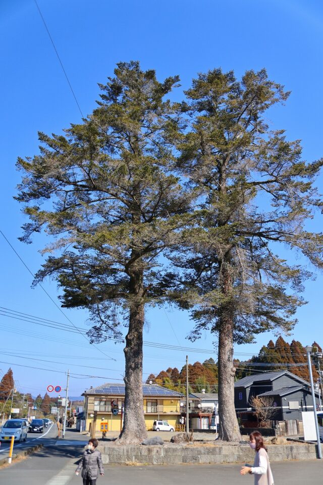 最後のランナーが通り過ぎた後、中継地点に行ってみます。すると駐車場に「もみの木」が二本そびえたっているではありませんか!!そこには「沿道修景指定樹木」と書かれた表示がありました。
