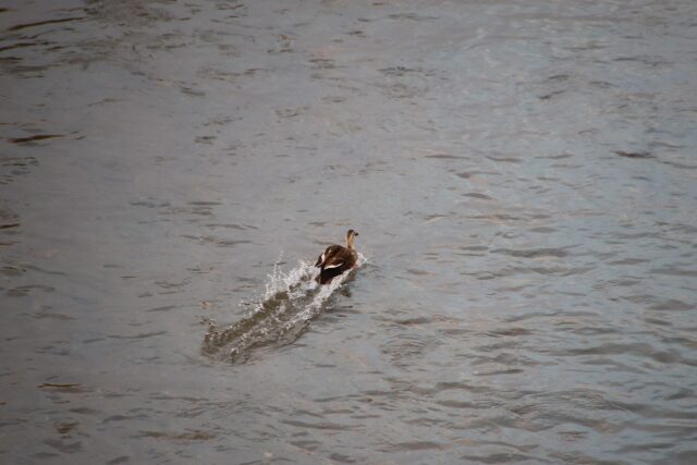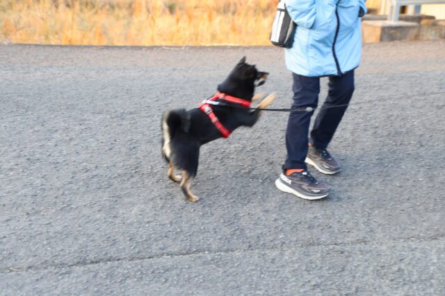 夕方の田園風景の中を歩きます。川には鴨が居ます。途中で黒豆柴のワンコと遭遇します。この子は以前大脱走をして一台捕り物を展開した奴です。また、散歩できていたとは!!