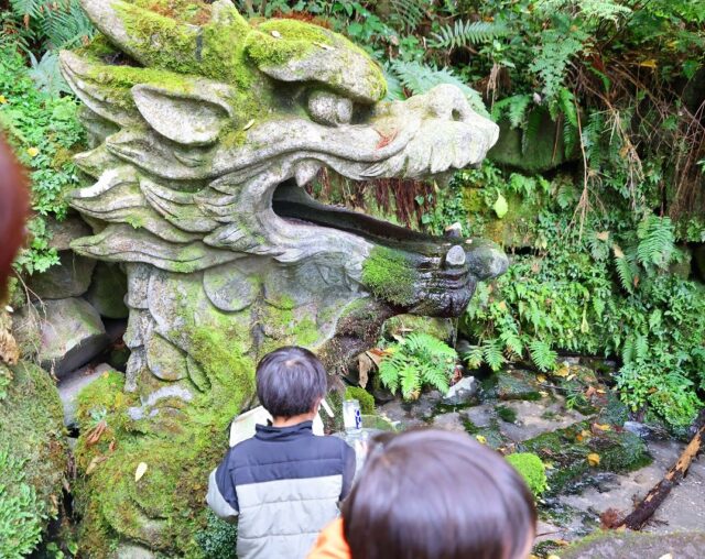 神宮からの帰りに龍神様に会いに行きます。神宮前のロータリーの駐車場に車を止めて歩いて川まで行くとそこには大きな龍神様と亀が居ます。孫たちはあまり興味は無いようです。