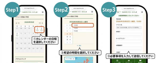 ご予約後、もみの木ハウスより確認とイベント会場のお知らせをメールでお送りいたします。