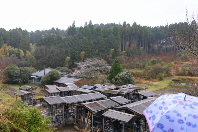 その後は国分の八幡家のお墓に行きます。家のすぐ近くなので、家から歩いていく事にします。雨が降り出したので傘をさしての墓参りです。