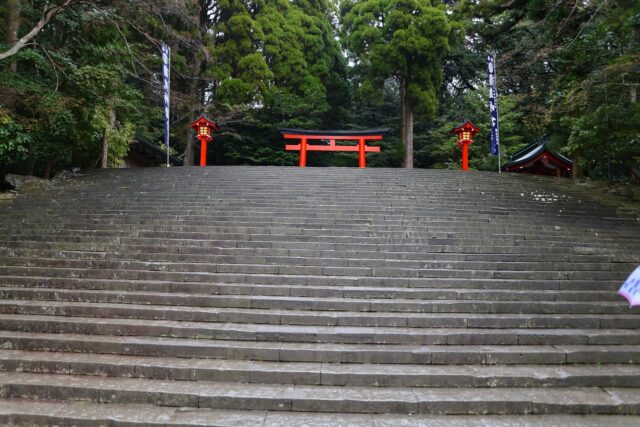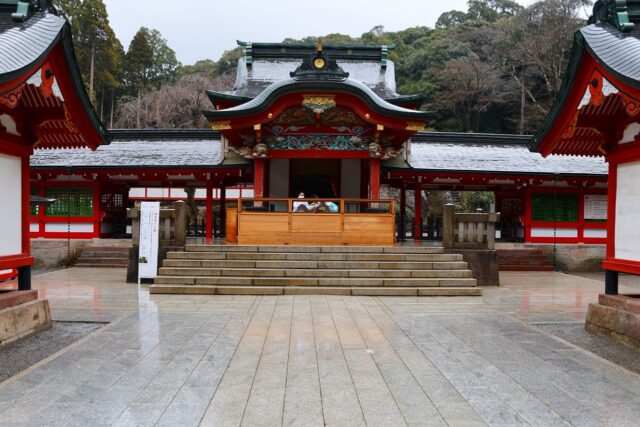 その後、霧島神宮まで足をのばします。雨が降っていますので人は少なかったです。今日のミッションが完了しました。