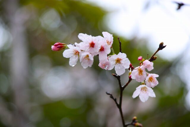桜の花が咲き始めていました。晴れたら綺麗でしょう。