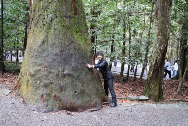 それから内宮内を散策します。広すぎてどこに何があるのかは把握できていません。ところどころに巨木があります。何百年も生きている木ですから、存在感があります。