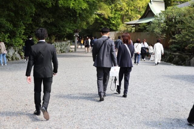 準備をして出掛けます。内宮までは20分ほどです。駐車場も何とか空いていたので待たずに止められました。まずは正式参拝に向かいます。
