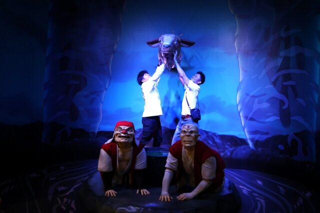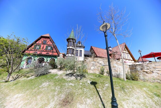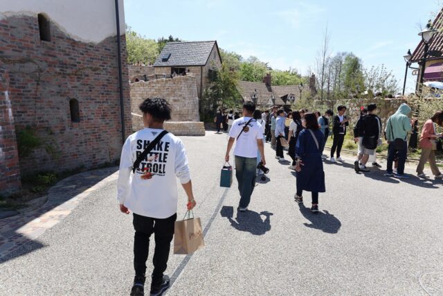 その後は「魔女の谷」へ向かいました。建物が再現されていました。ハウルの動く城もあります。よく作ったものです。