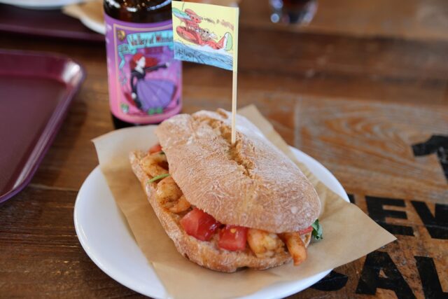 ちょうどお昼前になったのでランチに行きます。「大陸横断飛行」で「魔女の谷のビール」と「シュリンプサンド」をいただきます。美味い!!