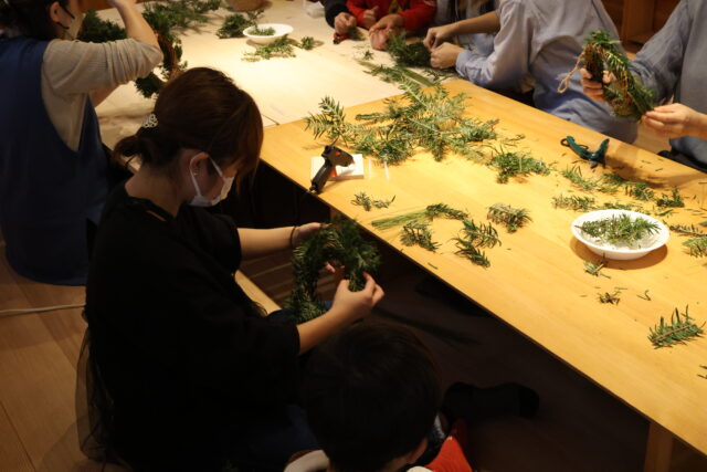 今回のワークショップは、もみの木の枝を使ったクリスマスリースづくり!