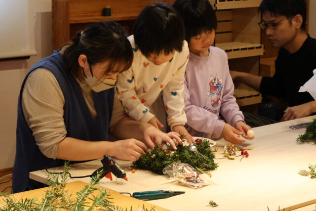 今回のワークショップは、もみの木の枝を使ったクリスマスリースづくり!