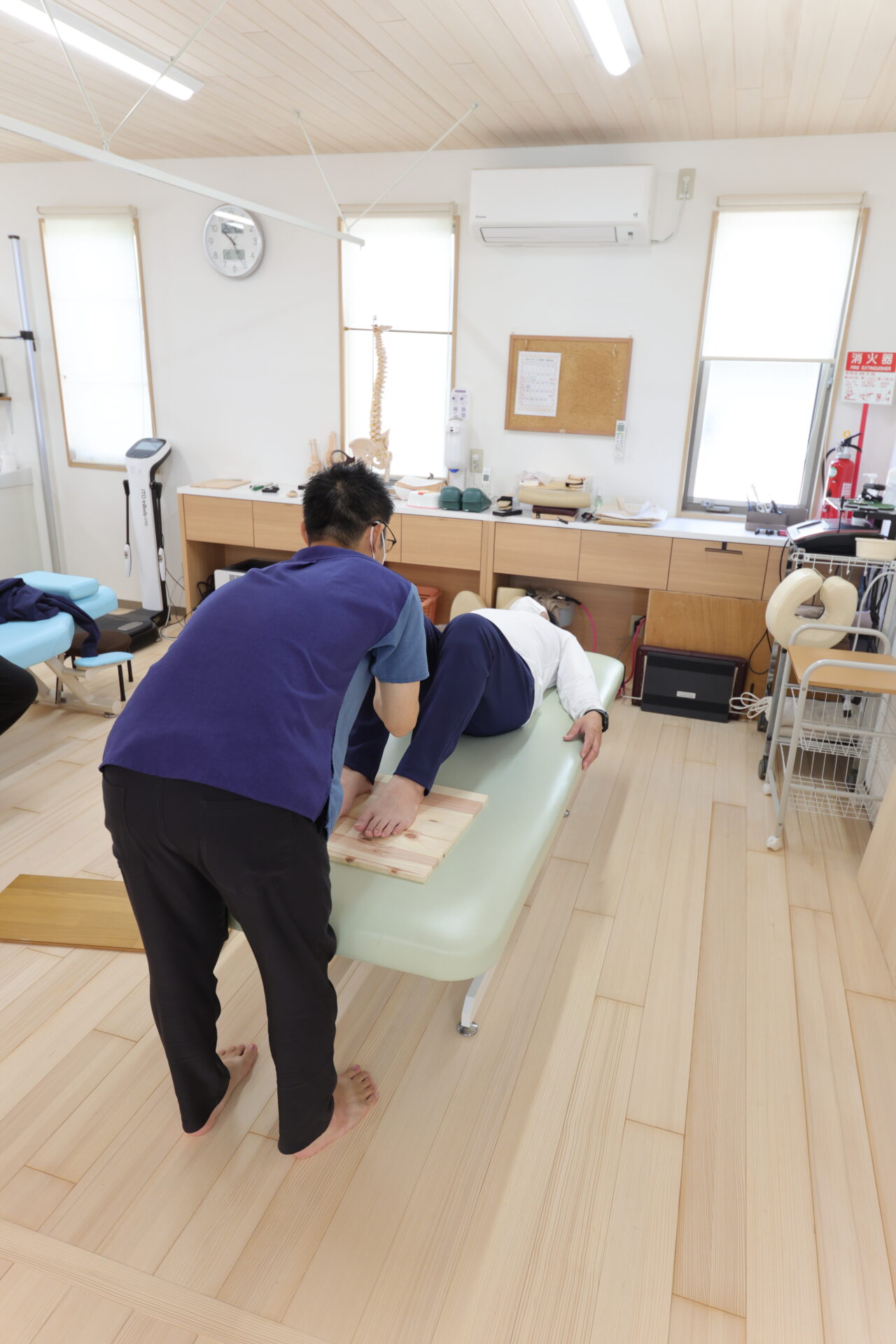 同じく治療院にもみの木を使用している 「ふく整骨院」さん を見学。