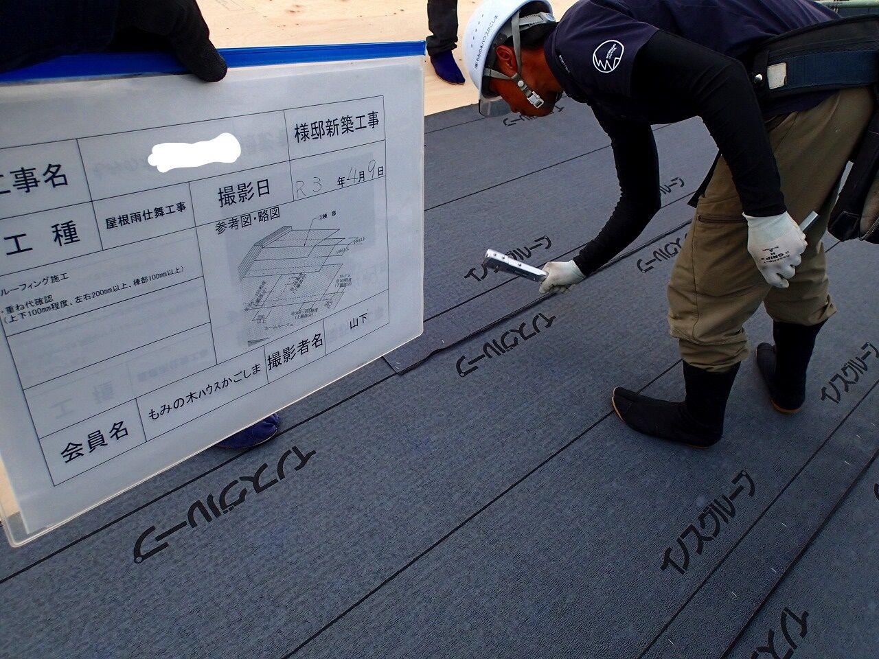 この状態で雨が漏らない事が大事です。屋根材は防水を期待できませんので、防水シートで防水はしっかりと対応します!!