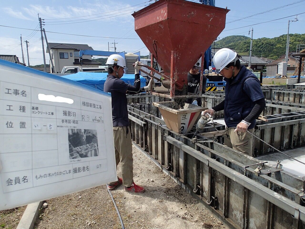 強度のムラが出ない様に作業を進めます。コンクリートは強度により値段が変わりますが、固まってからはその差は分かりません。