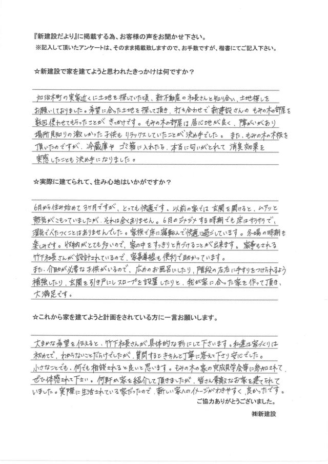 ※文中の「もみの木ハウス」は、分かりやすさのため便宜上、旧社名「新建設」を置き換えて表記しております。